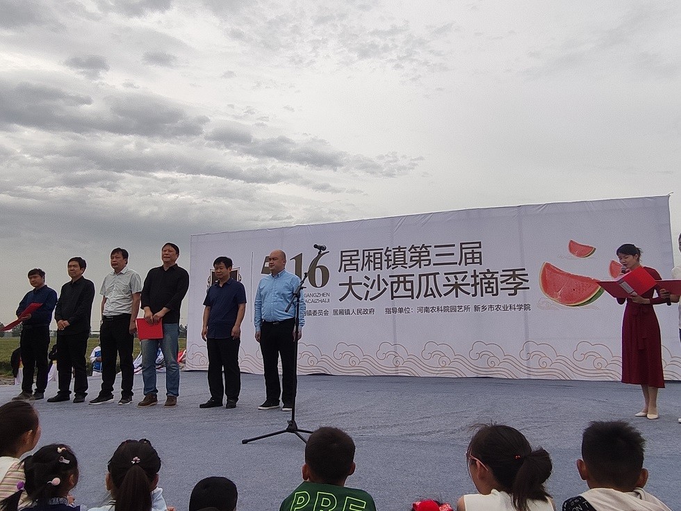 初夏伊始,封丘县居厢镇大沙西瓜迎来成熟季节。为宣传和推广大沙西瓜产业,展示成熟的西瓜高效栽培技术,带动一方百姓致富,5月16日,封丘县“居厢镇第三届大沙西瓜采摘季”成功举办,我院副院长张栩出席开幕式并致辞,河南省农科院园艺所西甜瓜研究室主任赵卫星、封丘县副县长魏耀武、封丘县文化广电和旅游局局长封立昌、居厢镇党委书记臧可嘉、居厢镇镇长路欣等莅临。